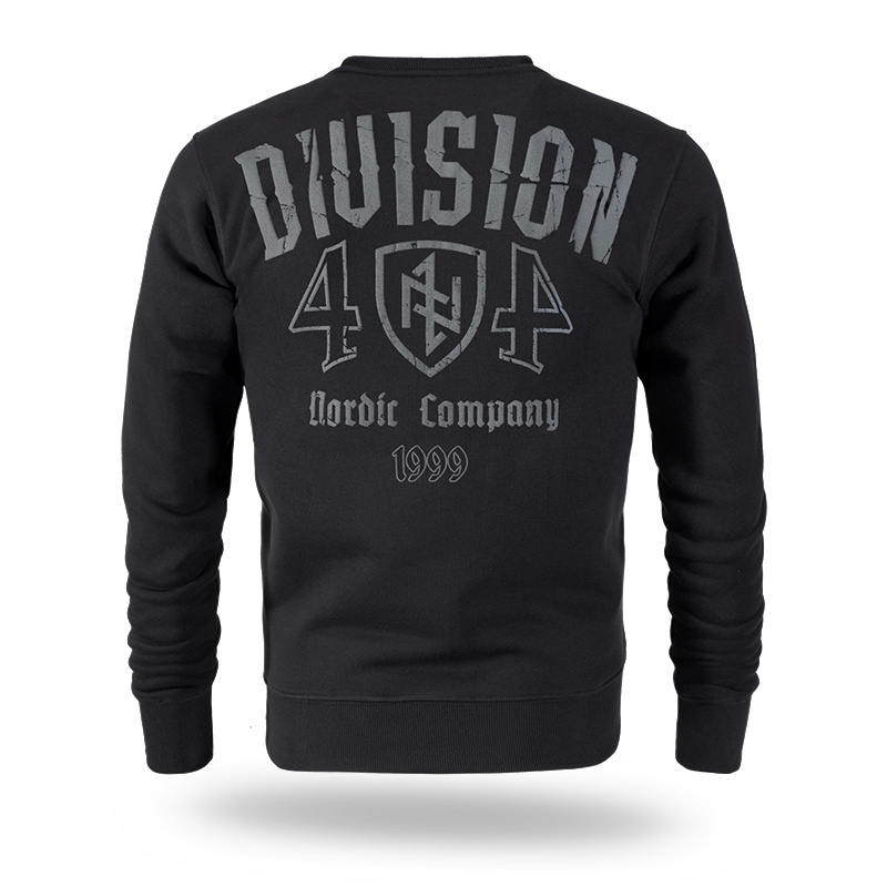 Model with a large print on the back featuring the inscription "Division 404" and a shield with a symbol, emphasizing the brand's distinctive style. On the front, there is a smaller print repeating elements from the back. Additionally, the back features a smaller "Nordic Company" inscription. The product is made of high-quality cotton, ensuring comfort and durability.