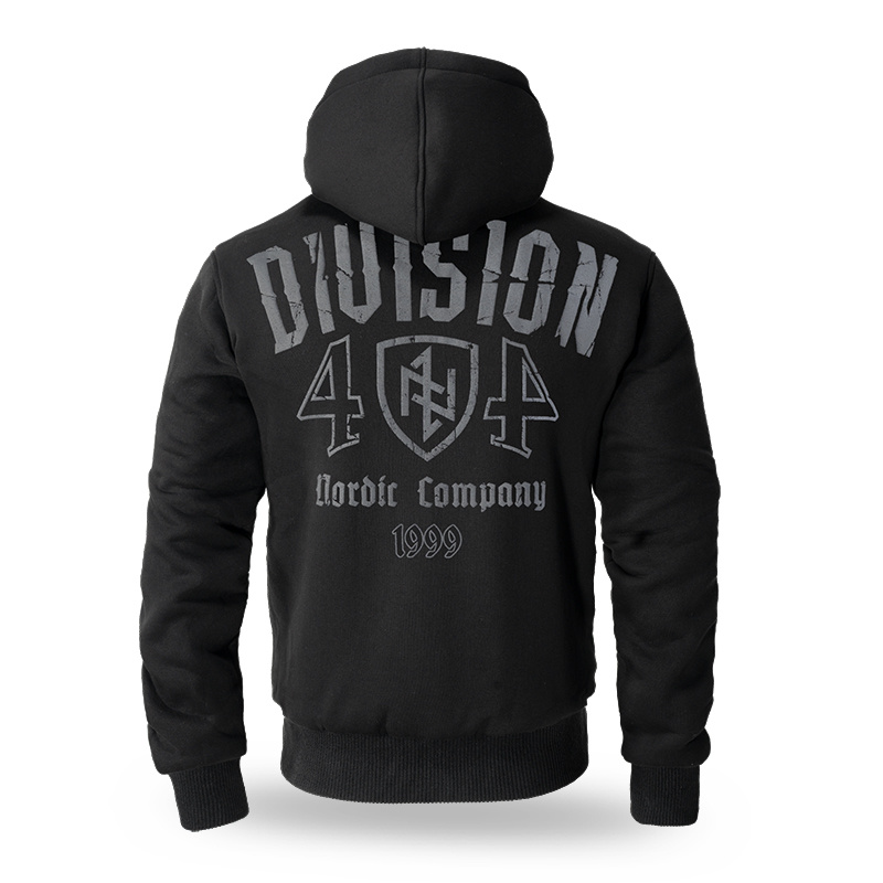 Model with a large print on the back featuring the inscription "Division 404" and a shield with a symbol, emphasizing the brand's distinctive style. On the front, there is a smaller print repeating elements from the back. Additionally, the back features a smaller "Nordic Company" inscription. The product is made of high-quality cotton, ensuring comfort and durability.