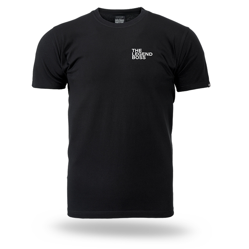 A small “THE LEGEND BOSS” inscription on the chest and a large graphic on the back featuring an open dog’s mouth with the phrase “THE LEGEND BOSS” in contrasting color. The product is made of high-quality cotton for comfortable wear.