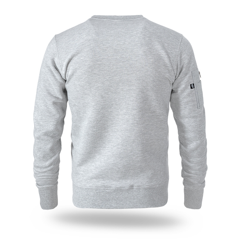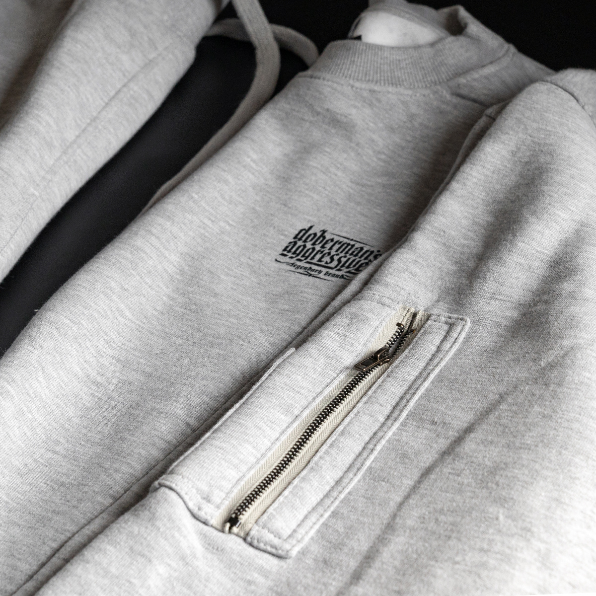 Na lewym rękawie wszyta mała metka z logo marki. Dół bluzy oraz rękawów wykończone szerokim ściągaczem. Z przodu bluzy na lewej piersi znajduję się małe, jednokolorowe logo marki Doberman’s. Model z dodatkową kieszonką na rękawie zapinaną na zamek.