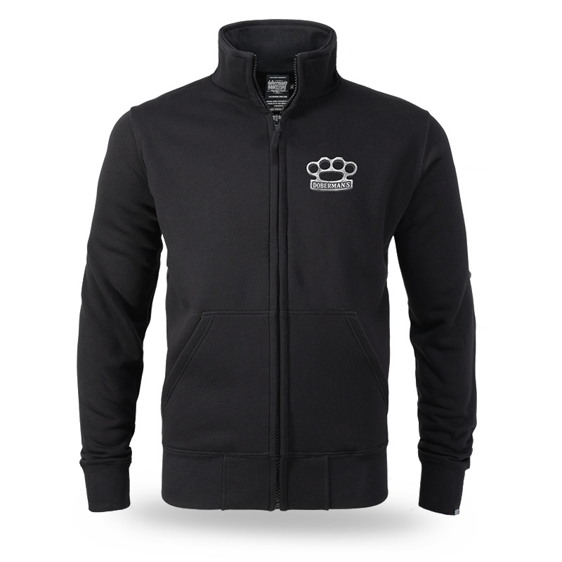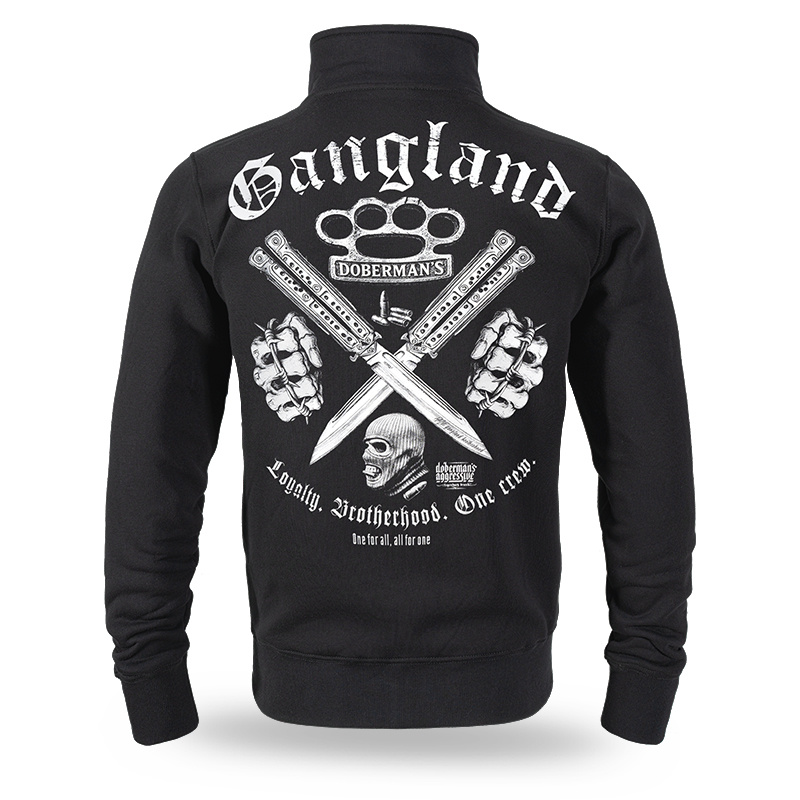 Na plecach znajduje się odważny nadruk z grafiką kastetów, noży motylkowych, zaciśniętych pięści i postaci w kominiarce. Poniżej widnieją hasła: Loyalty. Brotherhood. One crew. oraz One for all, all for one. Z przodu, na piersi, umieszczono mniejszy nadruk z kastetem i napisem Doberman's.