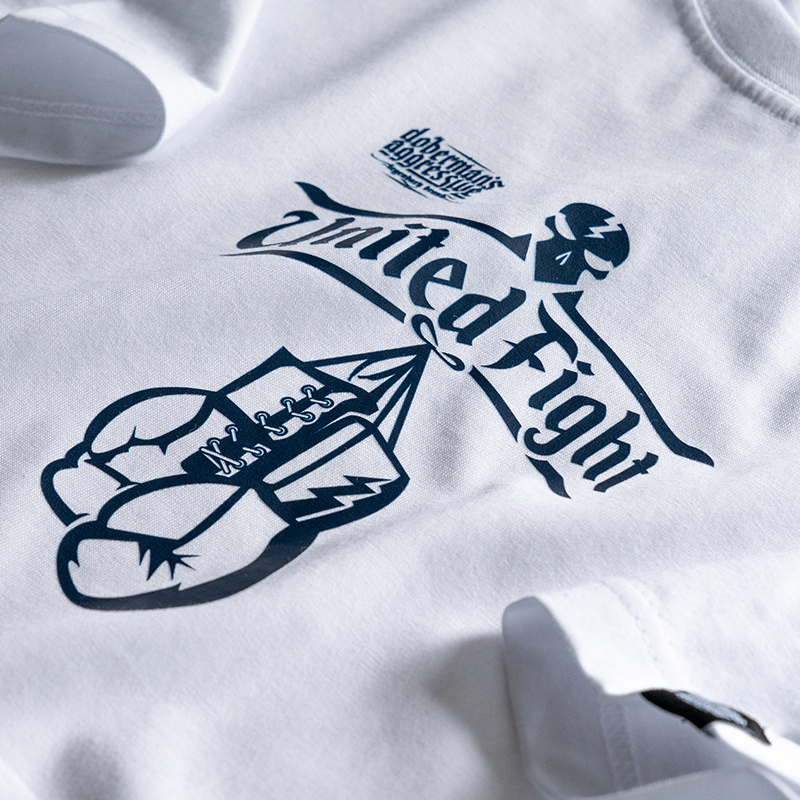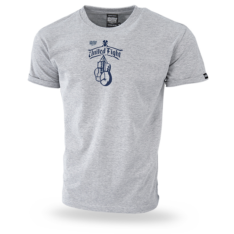 Odzież wykonana z bawełny o gramaturze 200g. Na lewym rękawku mała metka z logo Doberman’s Aggressive. Z przodu koszulki, umieszczony centralnie, na wysokości mostka znajduję się mały napis United Fight połączony z grafiką rękawic bokserskich. Całość dopełnia logo marki.