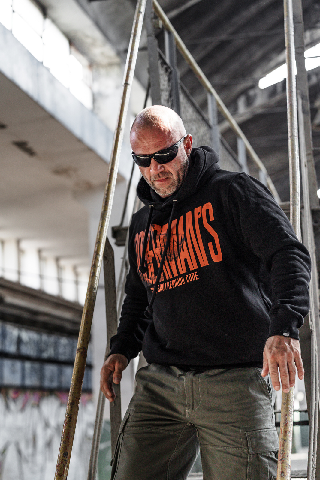 Model wykonany z dzianiny wysokiej jakości, ozdobiony dużym nadrukiem „DOBERMAN’S – THE BROTHERHOOD CODE” na froncie. Koszulka z dopasowanym krojem i starannym wykończeniem – propozycja dla fanów wyrazistego, ulicznego stylu.
