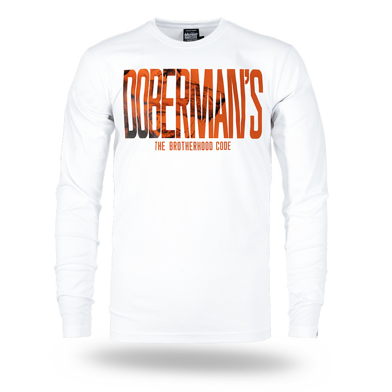 Model wykonany z dzianiny wysokiej jakości, ozdobiony dużym nadrukiem „DOBERMAN’S – THE BROTHERHOOD CODE” na froncie. Koszulka z dopasowanym krojem i starannym wykończeniem – propozycja dla fanów wyrazistego, ulicznego stylu.