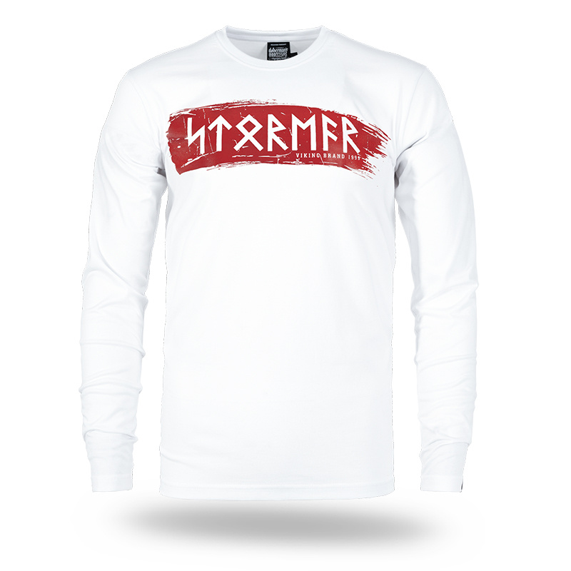 Model o prostym kroju, z długimi rękawami i wyrazistym nadrukiem STORMER – VIKING BRAND 1999 na piersi, którego litery stylizowane są na runiczny alfabet